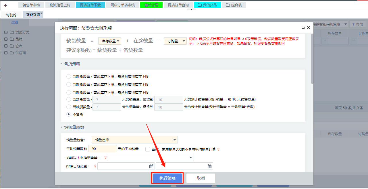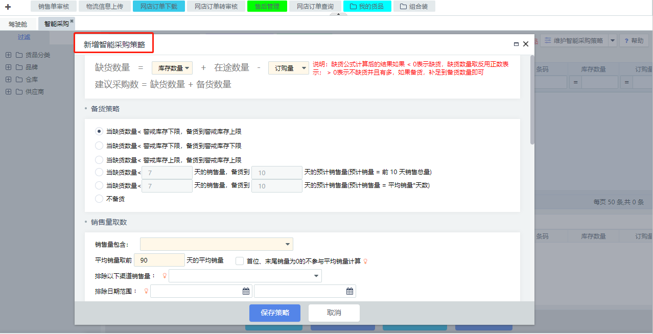 1.智能采购策略计算公式设置