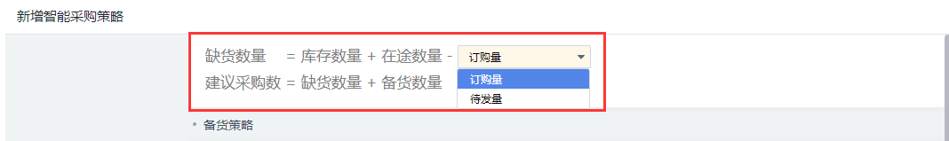 建议采购数(智能采购计算出需采购的货品和采购数量)=缺货数量+备货数量