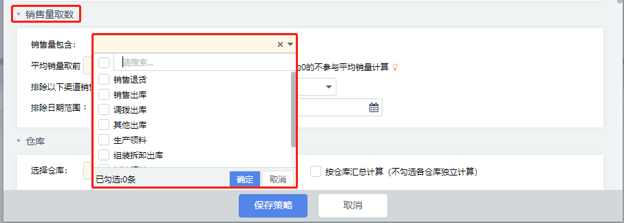 3.销售量取数是决定计算公式中销量的取值于那些出库单据及平均销量如何取值。