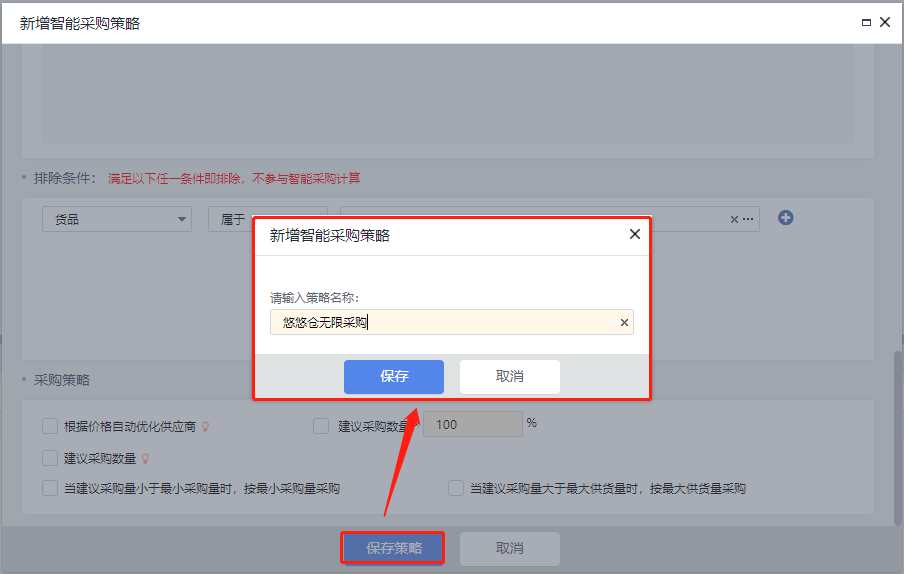 智能采购策略设置好后,保存并命名策略。