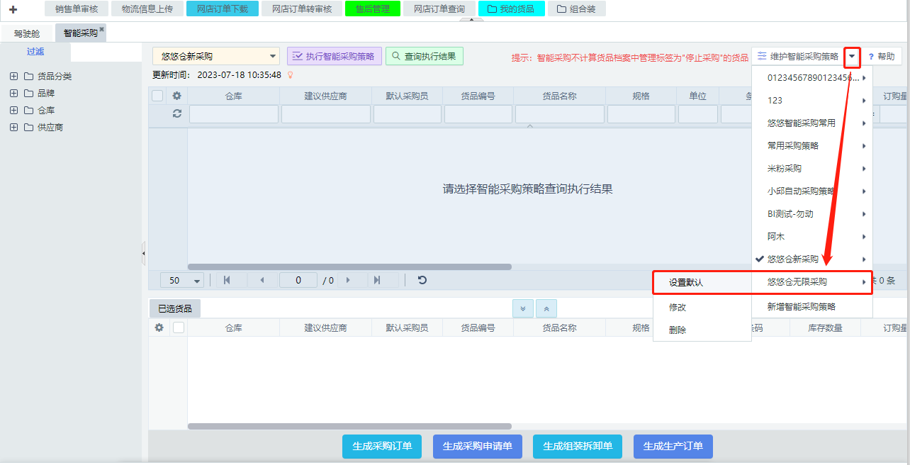 二、将常用智能采购策略设置为默认