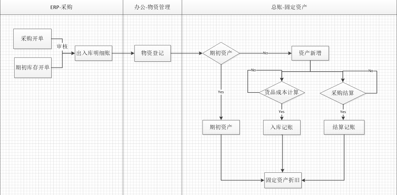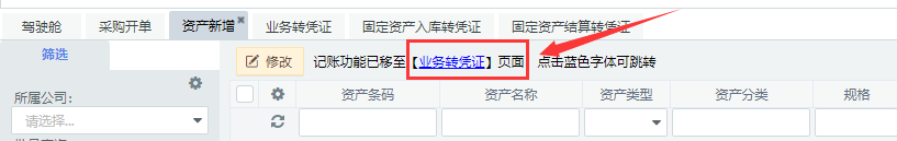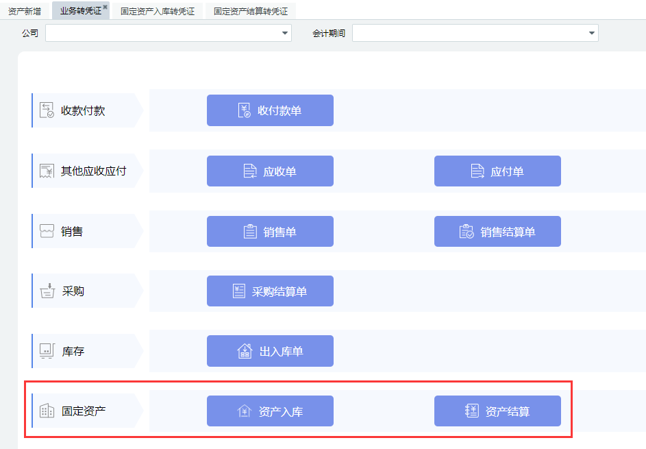 物资登记后的资产(包含固定资产、无形资产)自动流入【资产新增】界面。期初资产按照【资产设置】自动流入资产折旧,通过采购产生的资产则需在【业务转凭证】界面进行固定资产的资产入库和资产结算后再进行资产折旧,若采购业务的入库记账方式是“不暂估”时,则仅操作资产结算后,则进入资产折旧。