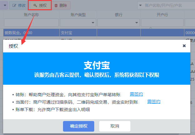 6.结算账户授权