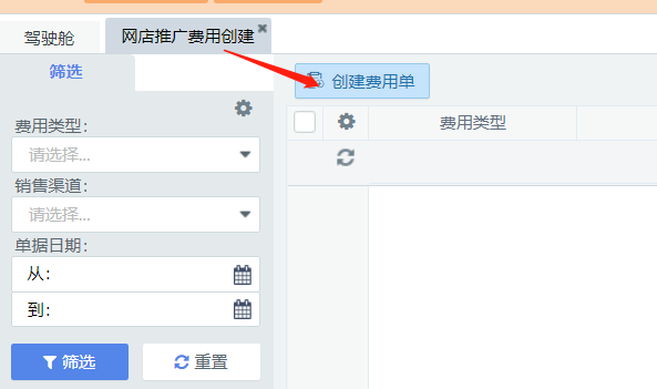 在“网店推广费用创建”页面,选择对应网店费用单,点击【创建费用单】。