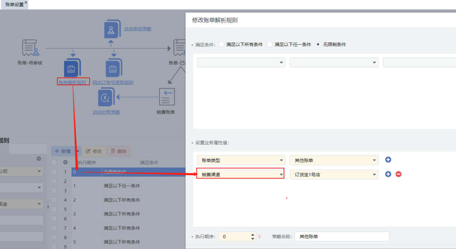 建议在账单的第一条解析规则里,设置对应的销售渠道,这样这个结算账户中所有的账单无论归集与否都可以关联销售渠道,这样看店铺利润表的费用就比较全面。
