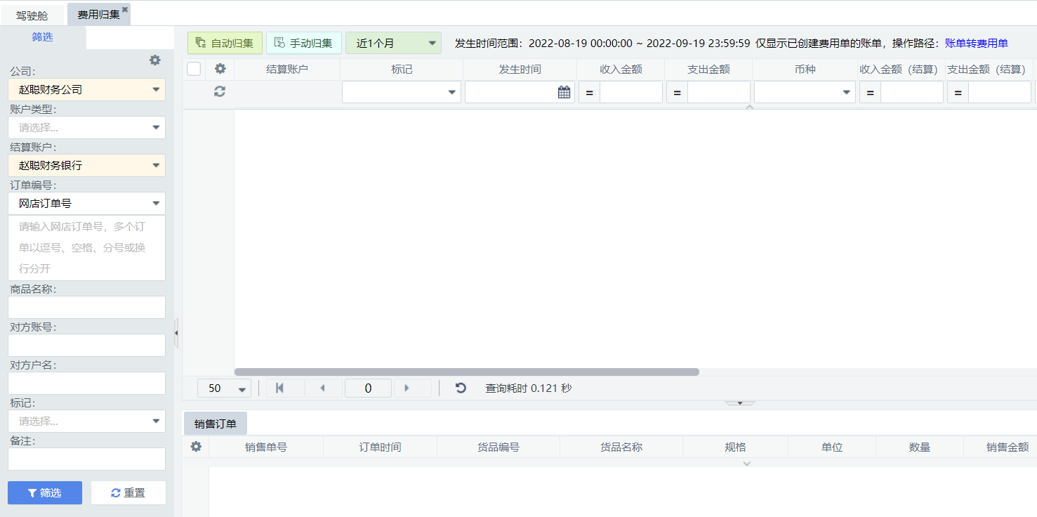 费用归集页面可以将费用账单与已发货的销售订单进行匹配。该功能可以设置自动完成,归集后的销售单将会带有归集订单上的销售渠道和货品。