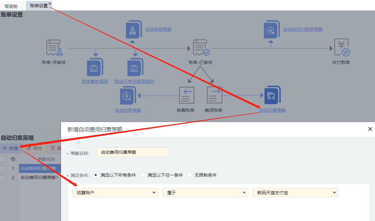 账单下载、递交、解析、审核、归集都可以设置自动策略自动完成。