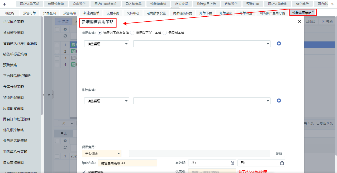 销售费用指的是在销售单中,手工填写或者业务策略自动创建的费用单。
