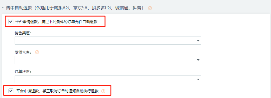 注意:必须是平台设置并开启取消发货自动退款策略后产生的订单,自动退款才会生效。