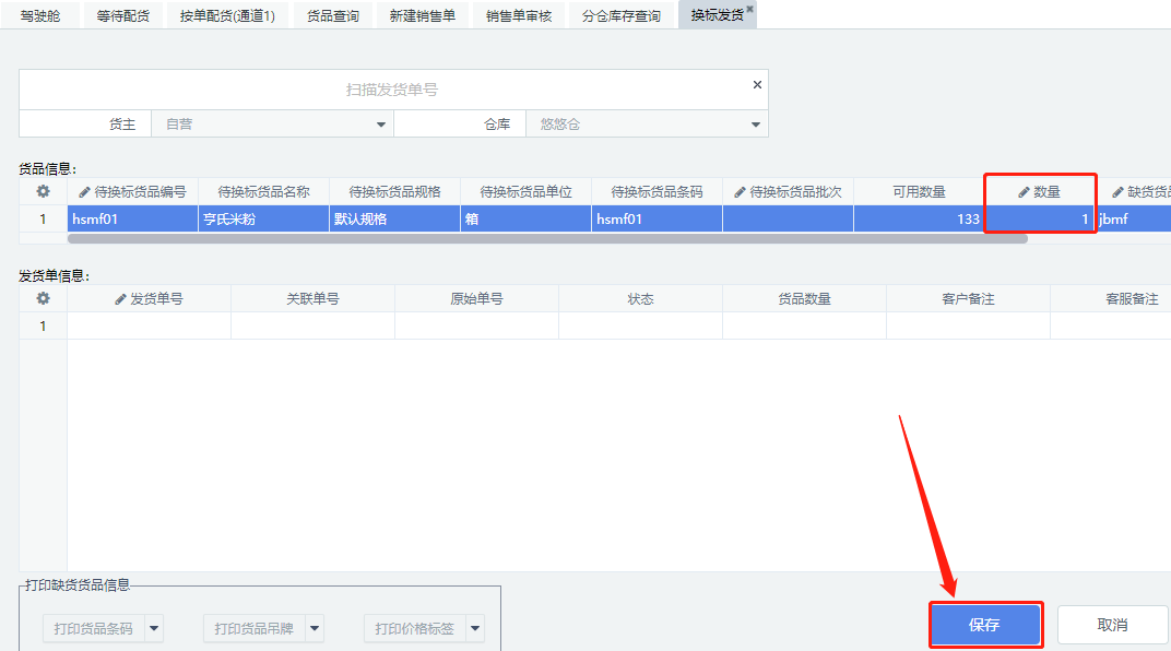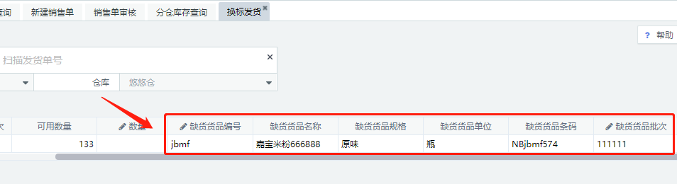 【出库查询】换标货品生成对应的出库单。即换标货品库存减少,对应的被替换的货品增加。