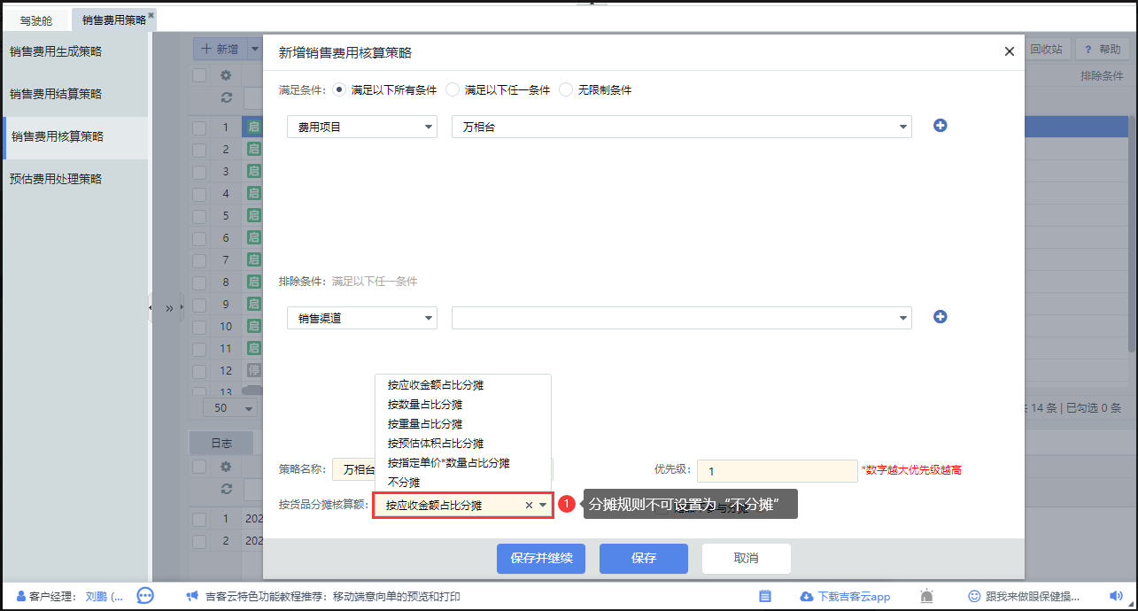 分摊规则只是用来标识网店推广费需要分摊,并不会按照该规则进行分摊,因此设置时除“不分摊”外任意选项都可以。