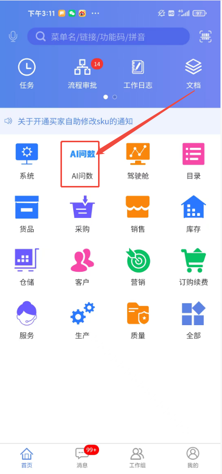 您可以通过首页的【AI问数】菜单进入,操作步骤与pc端相似,只需直接提问即可获取数据结果。