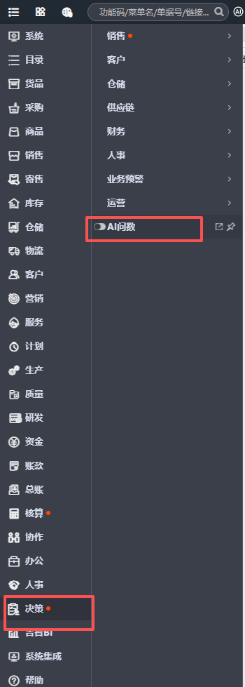 1.1、【决策】>>【AI问数】,打开问数页面