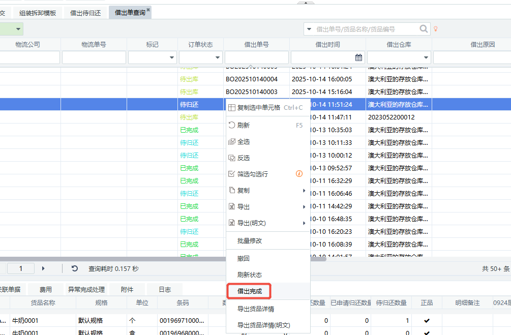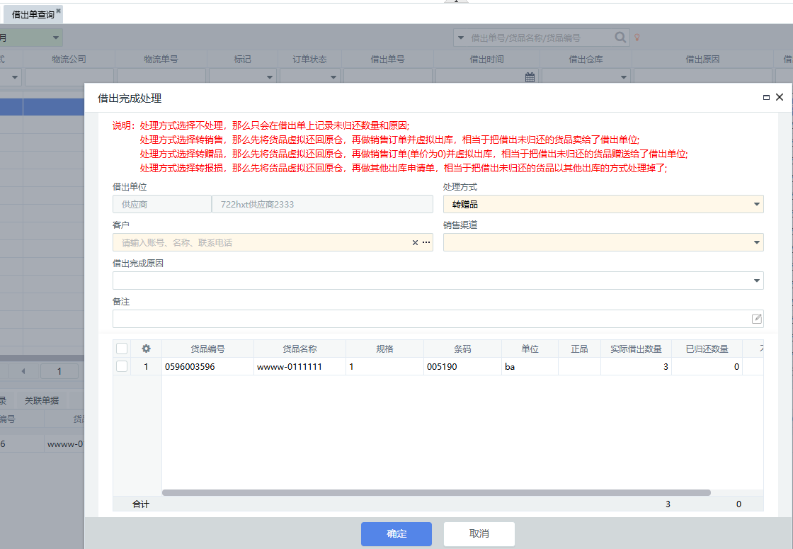 1、待归还的借出单新增了强制完成功能,支持转销售、转赠送、转报损或者不处理,受功能权限:借出单查询-借出完成控制。操作说明可见借出单查询右上角帮助文档。