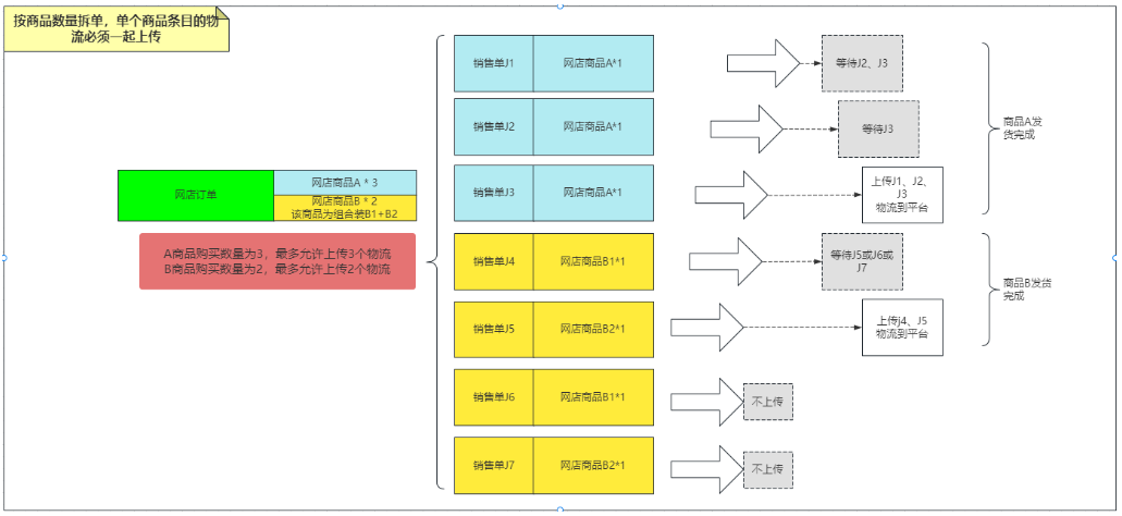 有赞默认支持按商品条目拆单,订单中每个商品行可上传1个物流单号,可以多次上传