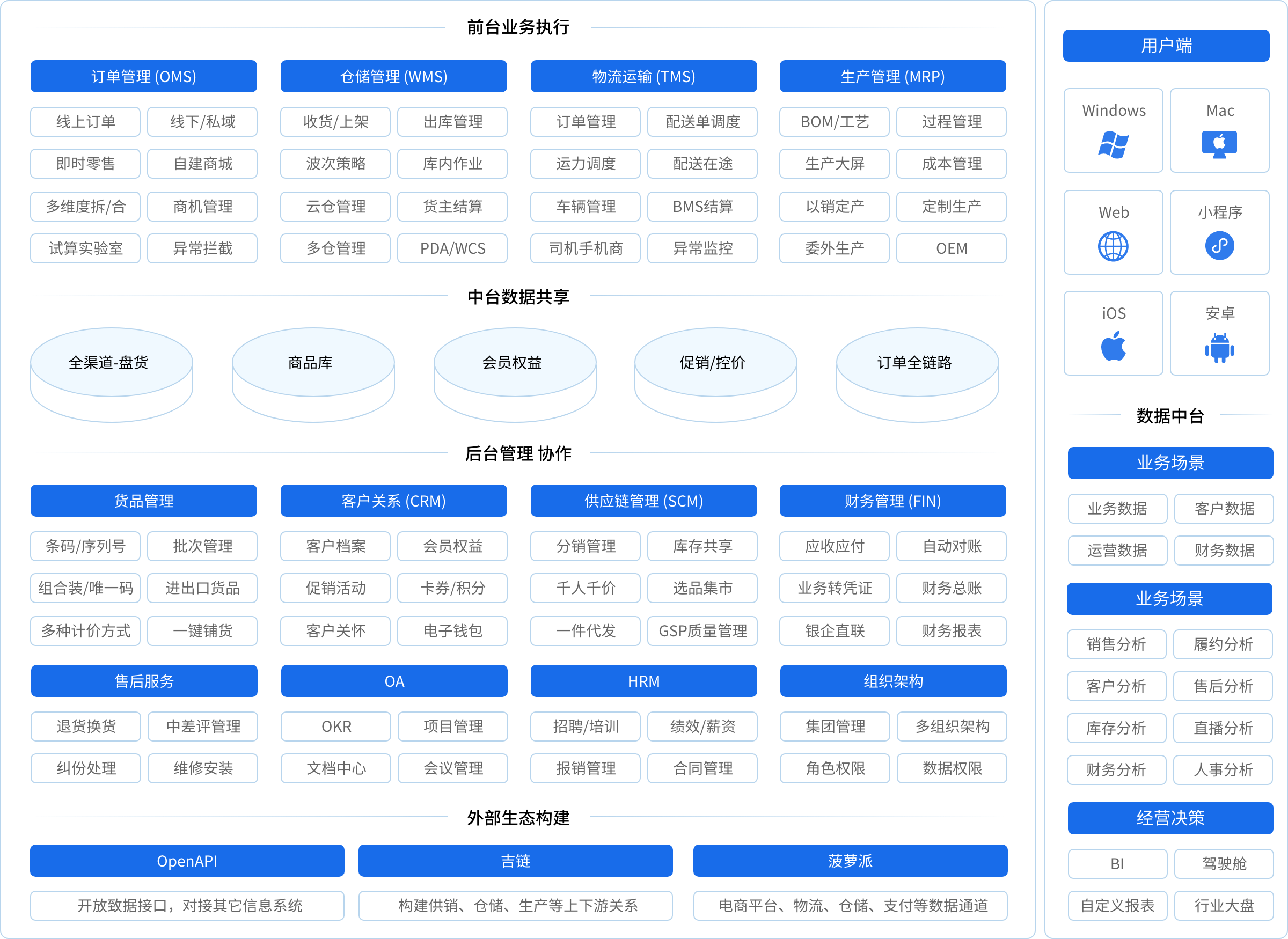 破除数据孤岛,业务、财务、生产、办公一体化管理